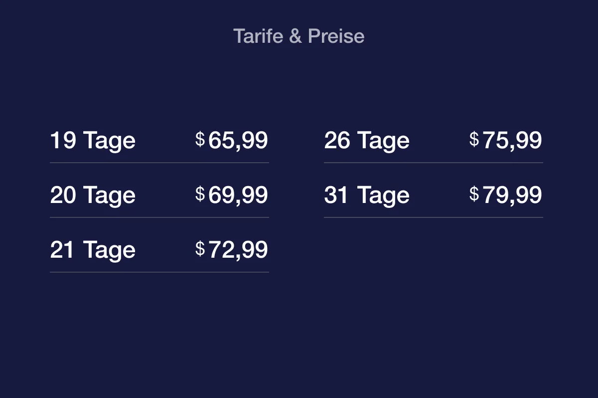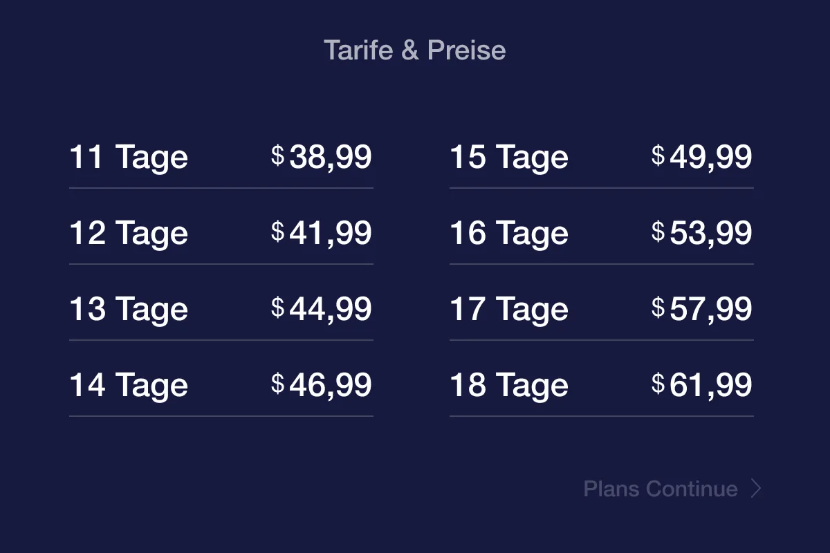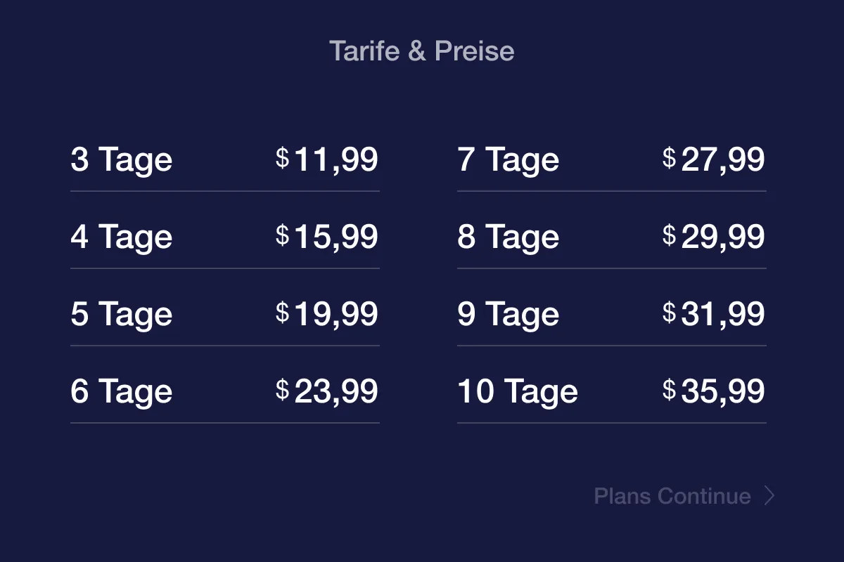 Wähle den passenden Tarif für deine Reise und bestelle ihn online.