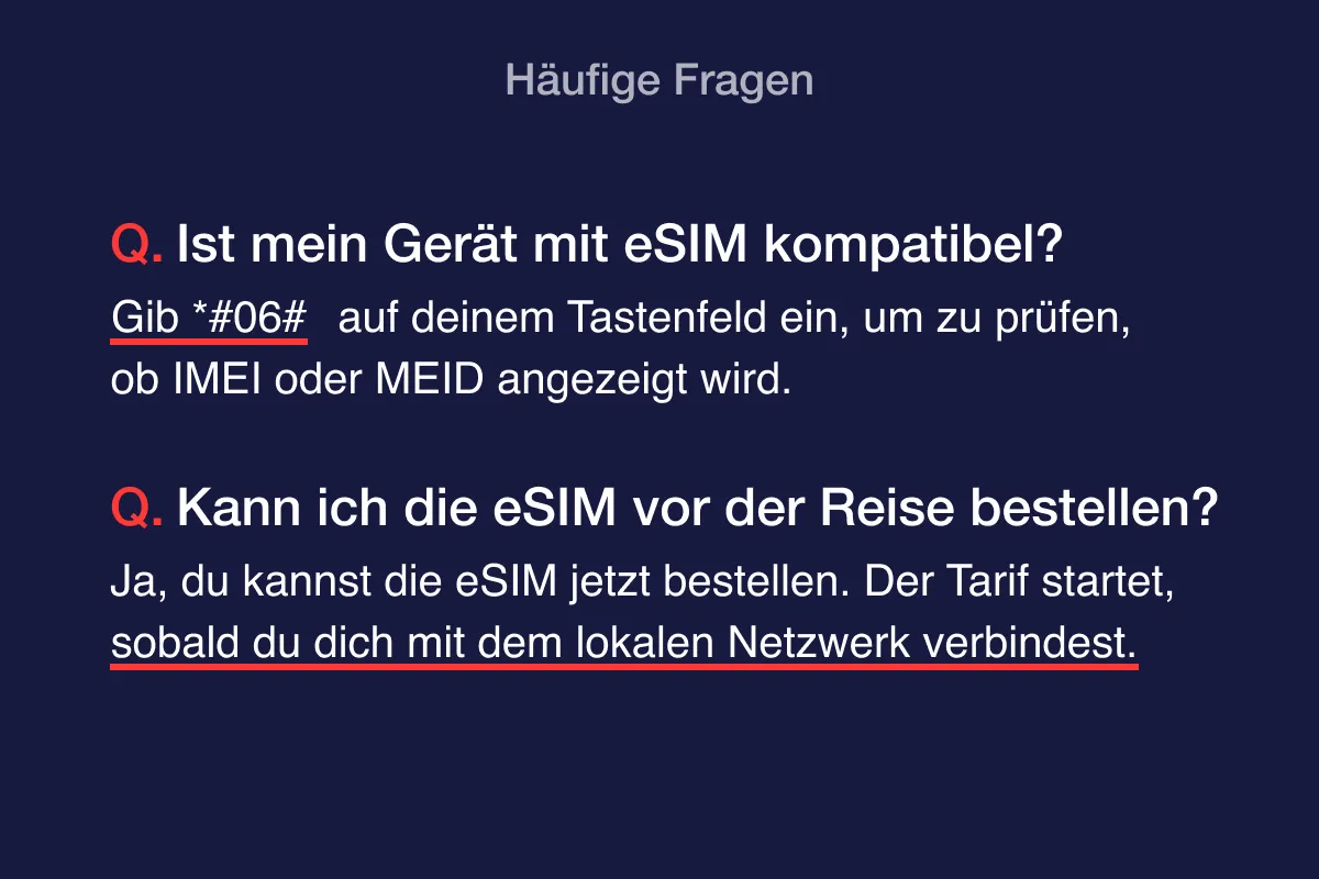 Du kannst die eSIM jederzeit kaufen – entweder einen Tag vor der Reise oder nach der Ankunft.