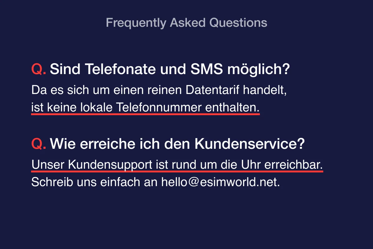 Für Unterstützung kontaktieren Sie das ESIMWORLD.net-Team jederzeit unter [email protected] oder über WhatsApp. |